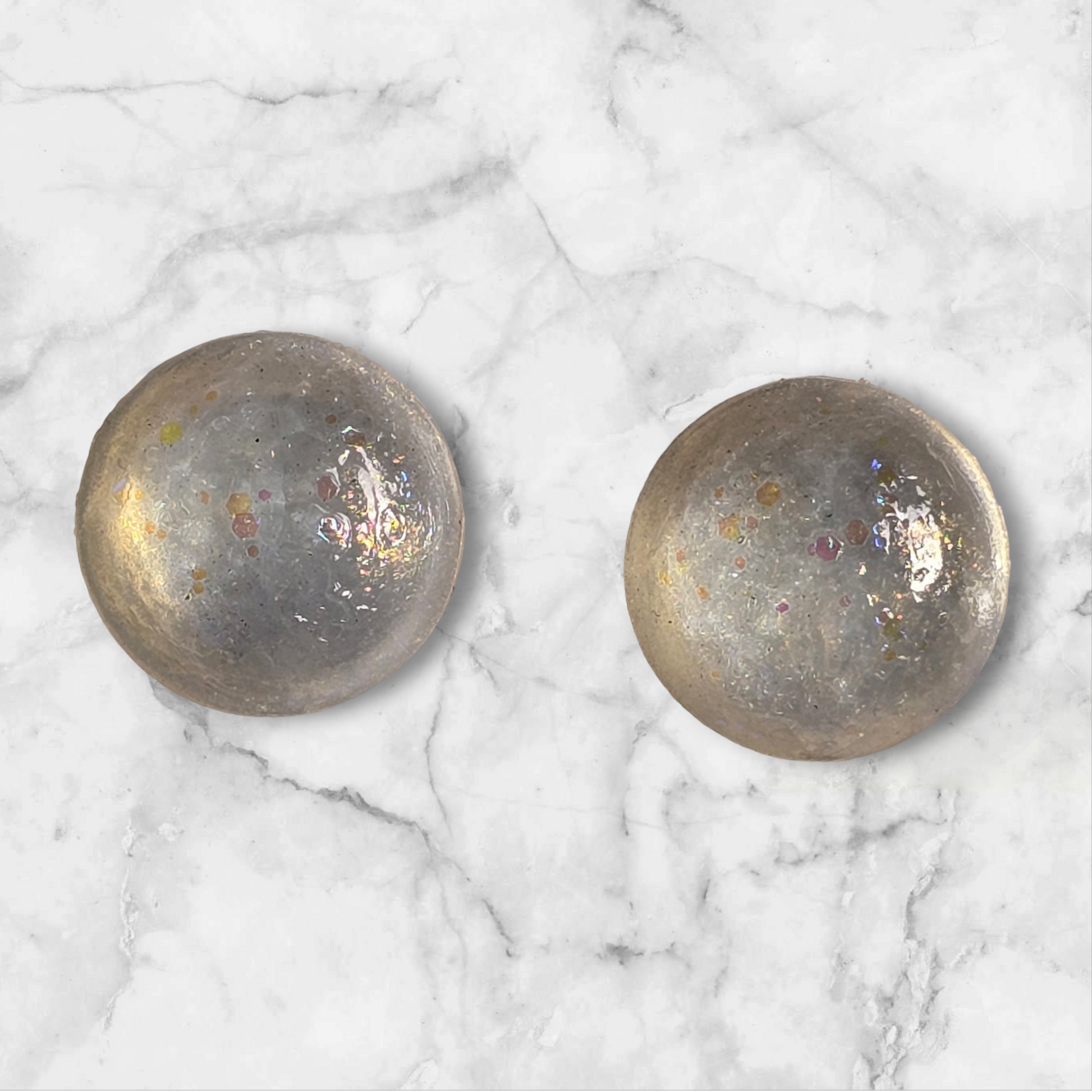 Earrings studs round clear with very little light reflecting