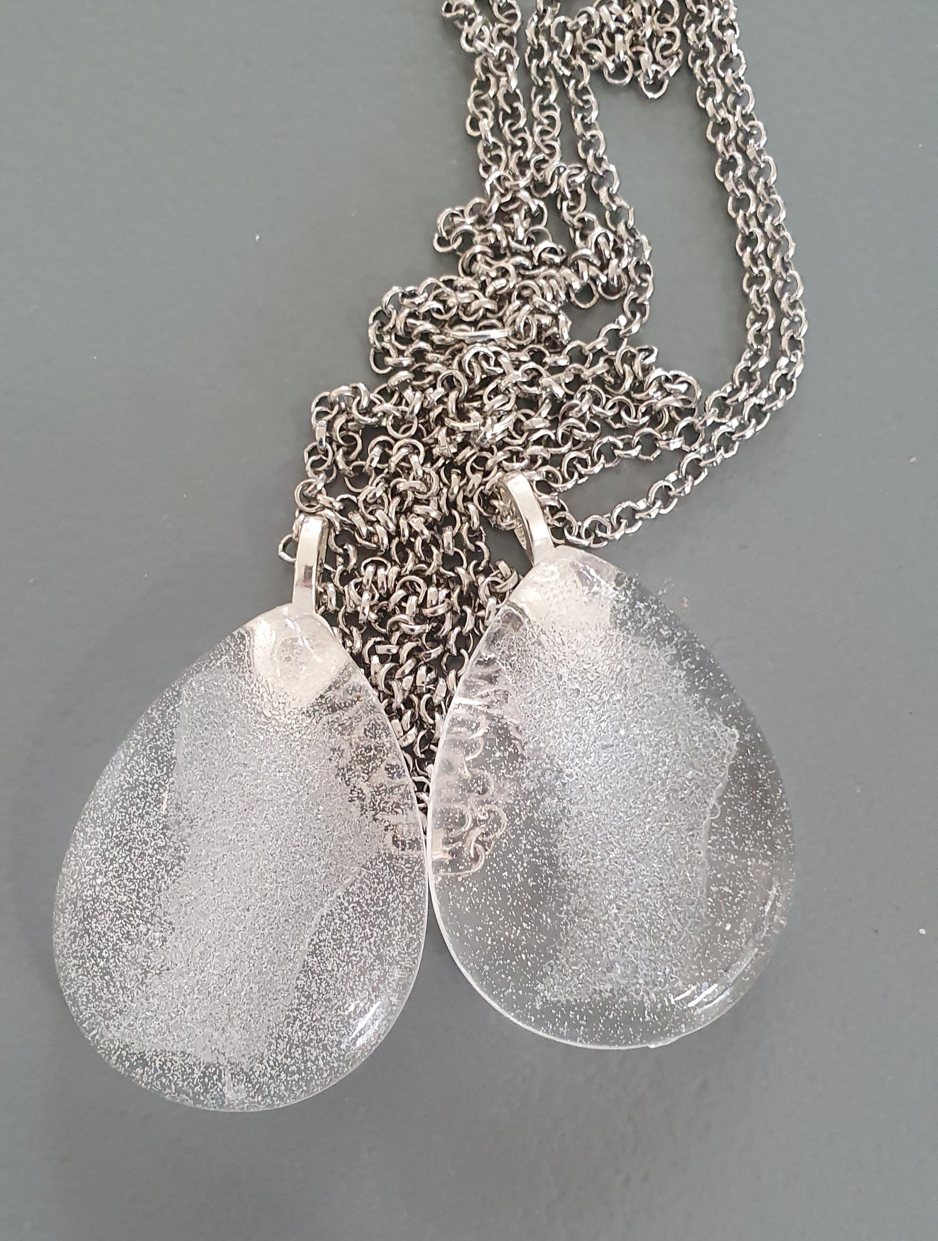 Perfect for layering with other necklaces or just wearing it by itself. The simplicity of this pendant is great for wearing it by it self as well. Unique and beautiful Crystal looking Pendant with a silver chain. This piece is Unique as it is individually made. Once it is sold they will no longer be available so if you see one you like get it before it disappears. No 2 are ever exactly the same. Add individual and unique elegance and beauty to women.