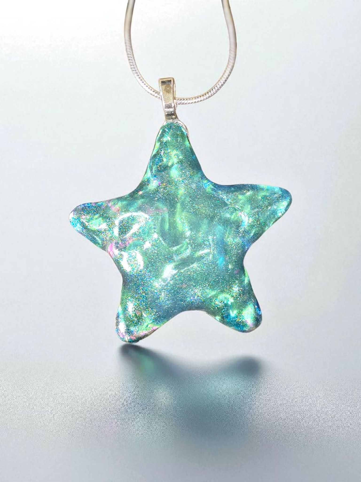 This pendant features a seastar design with a water ripple green finish. Crafted with quality materials, it offers a unique touch to any outfit. The seastar design showcases your love for the sea, while the water ripple green adds an eye-catching effect. Perfect for nature enthusiasts.