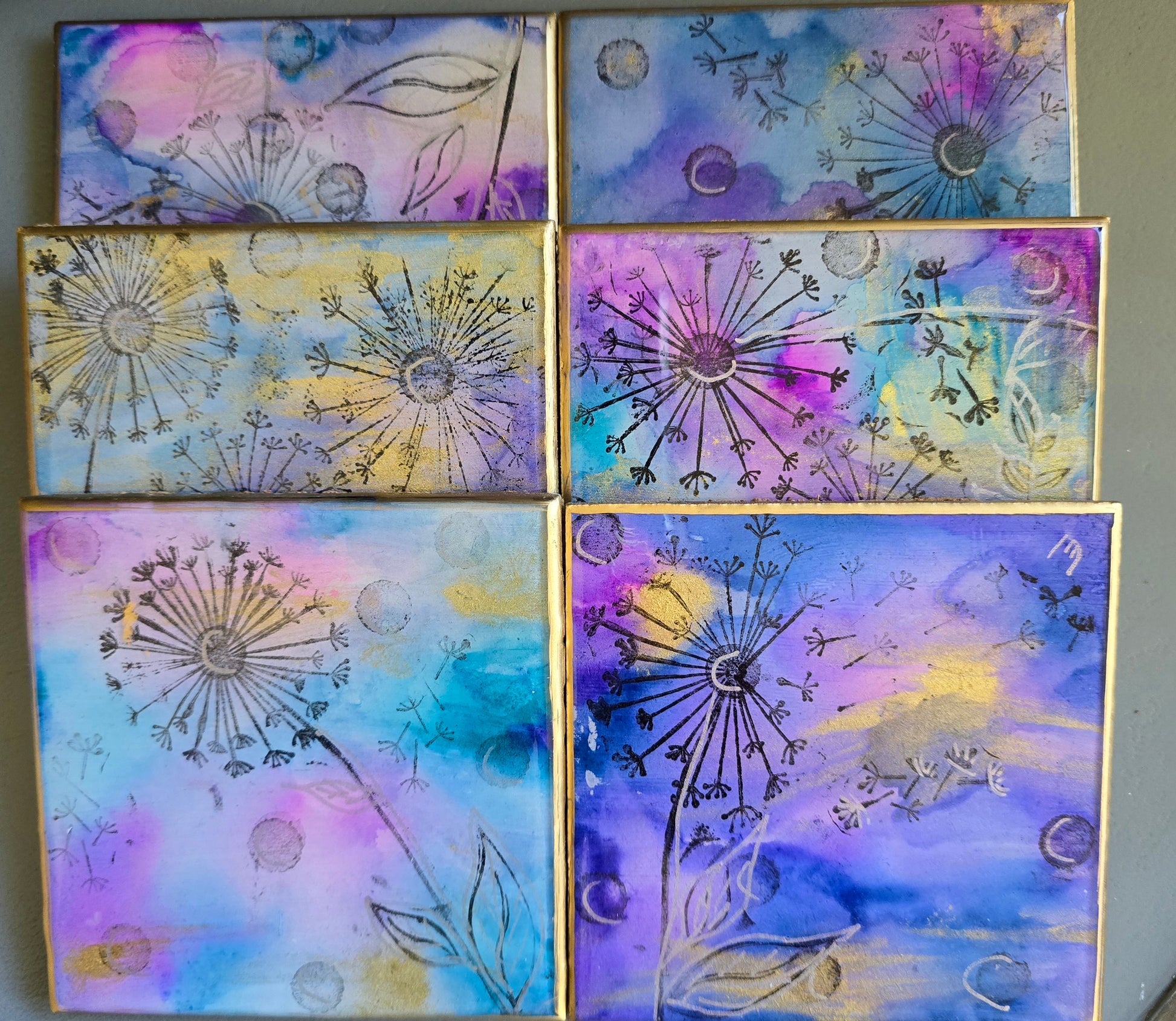 Coaster set 6 Dandelions