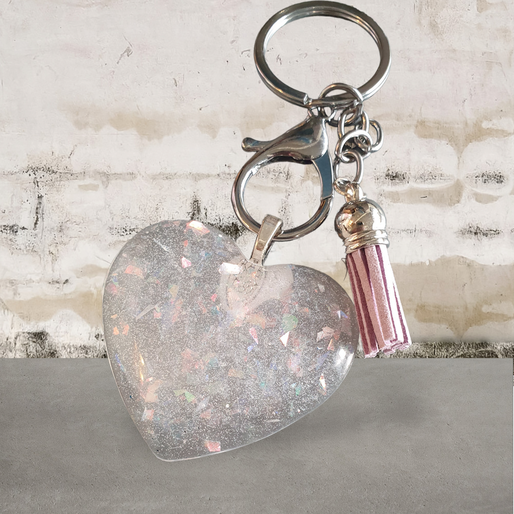 Unique and beautiful Heart Key chains. They are vibrant coloured hearts with different coloured keychains ie, silver, gold, rosegold, chameleon, black and gunmetal. . Each piece is always Unique as they are individually made. Once they are sold they will no longer be available so if you see one you like get it before it disappears. No 2 are ever exactly the same. Every keyring has either a bauble, charm or tassel attached.
