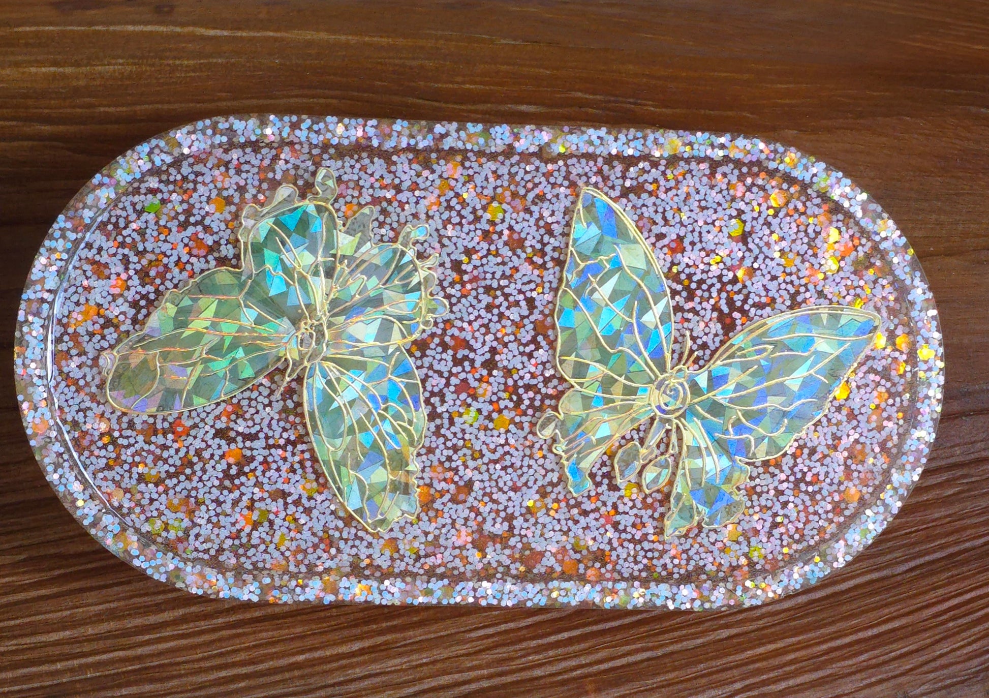 Irresistibly Pink...... Pink Glitter tray with w large butterflies. Are you always losing your keys, or know someone who does? This fun modern decorative tray will make a great housewarming gift. This elegant tray is a beautiful way to light up any space and to display your perfume, jewellery or even a pot plant. This unique minimalist handmade resin tray is perfect as a house warming gift, birthday or any special event for your loved ones. Lovely gift for a little girl