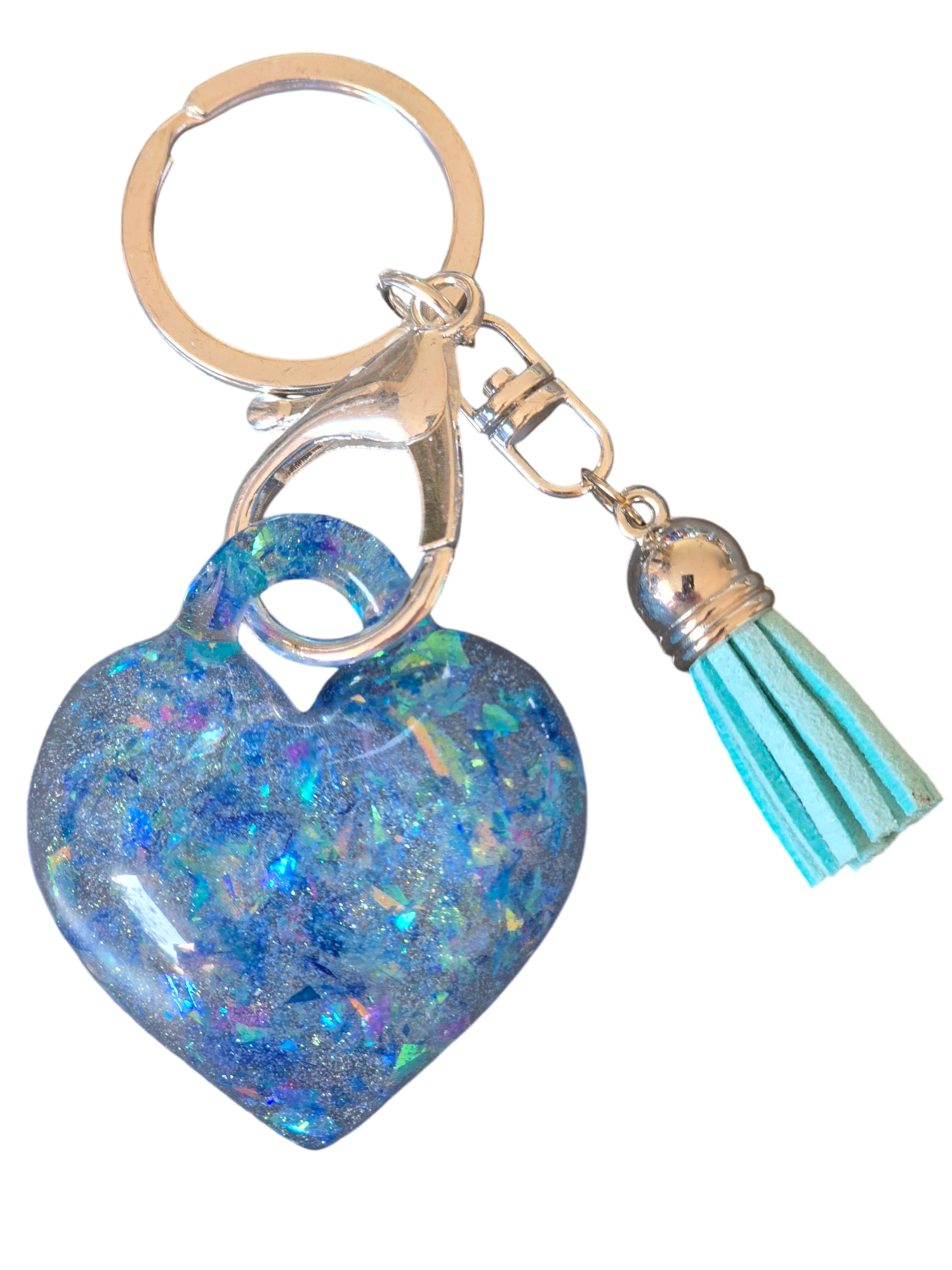 Elevate your style with our Keycharm puffy heart in beautiful blue sparkle. This luxurious accessory adds a touch of sophistication to your keys or bag. Its puffy heart design and sparkling blue color make it a statement piece that exudes elegance. Upgrade your everyday look with our premium Keycharm.