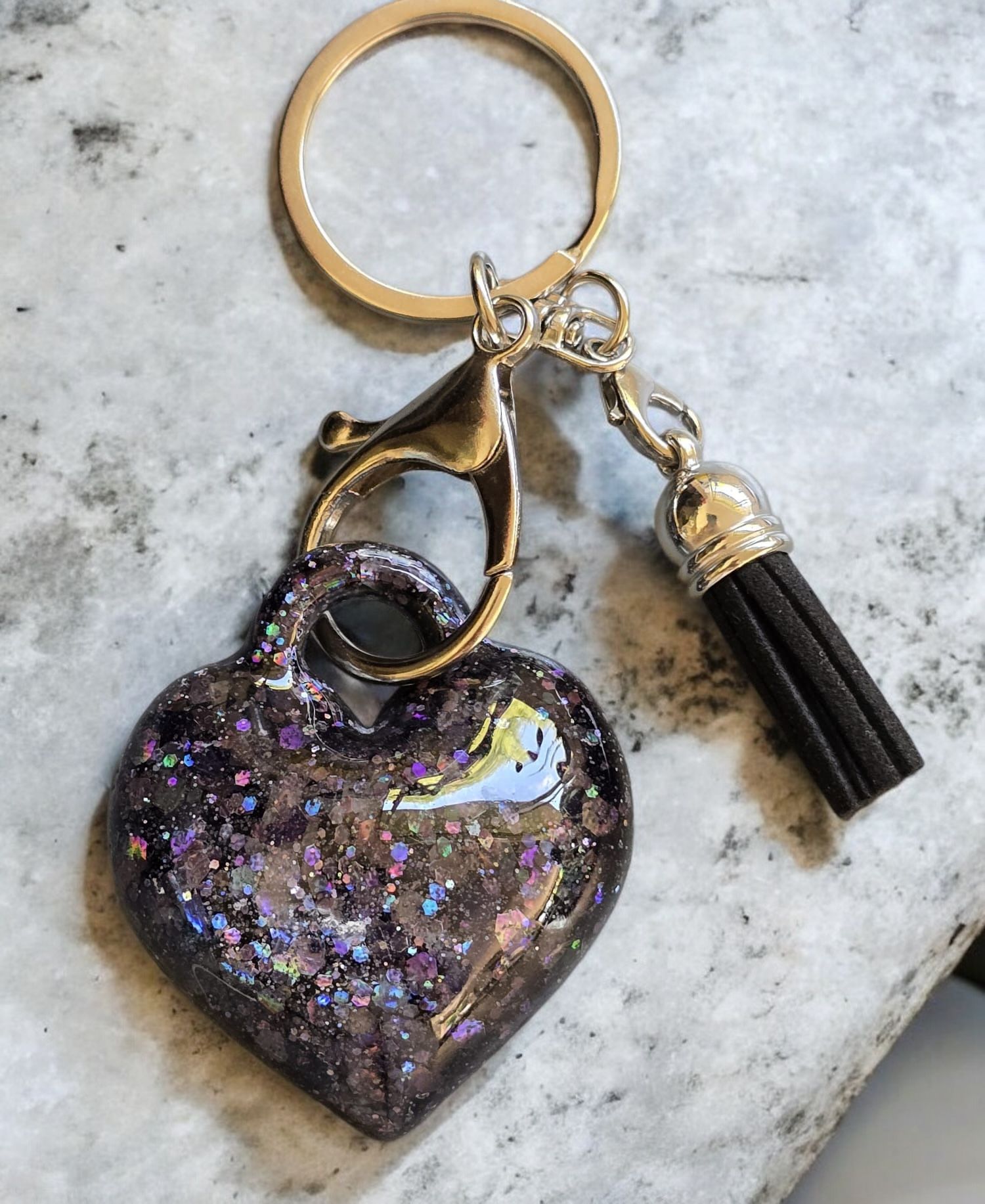 Add some sparkle and sass to your keys with our Keycharm puffy heart! The black sparkle adds a touch of glamour, while the tassel adds a playful edge. Perfect for anyone who wants to keep their keys stylish and secure. Don't miss out on this must-have accessory!