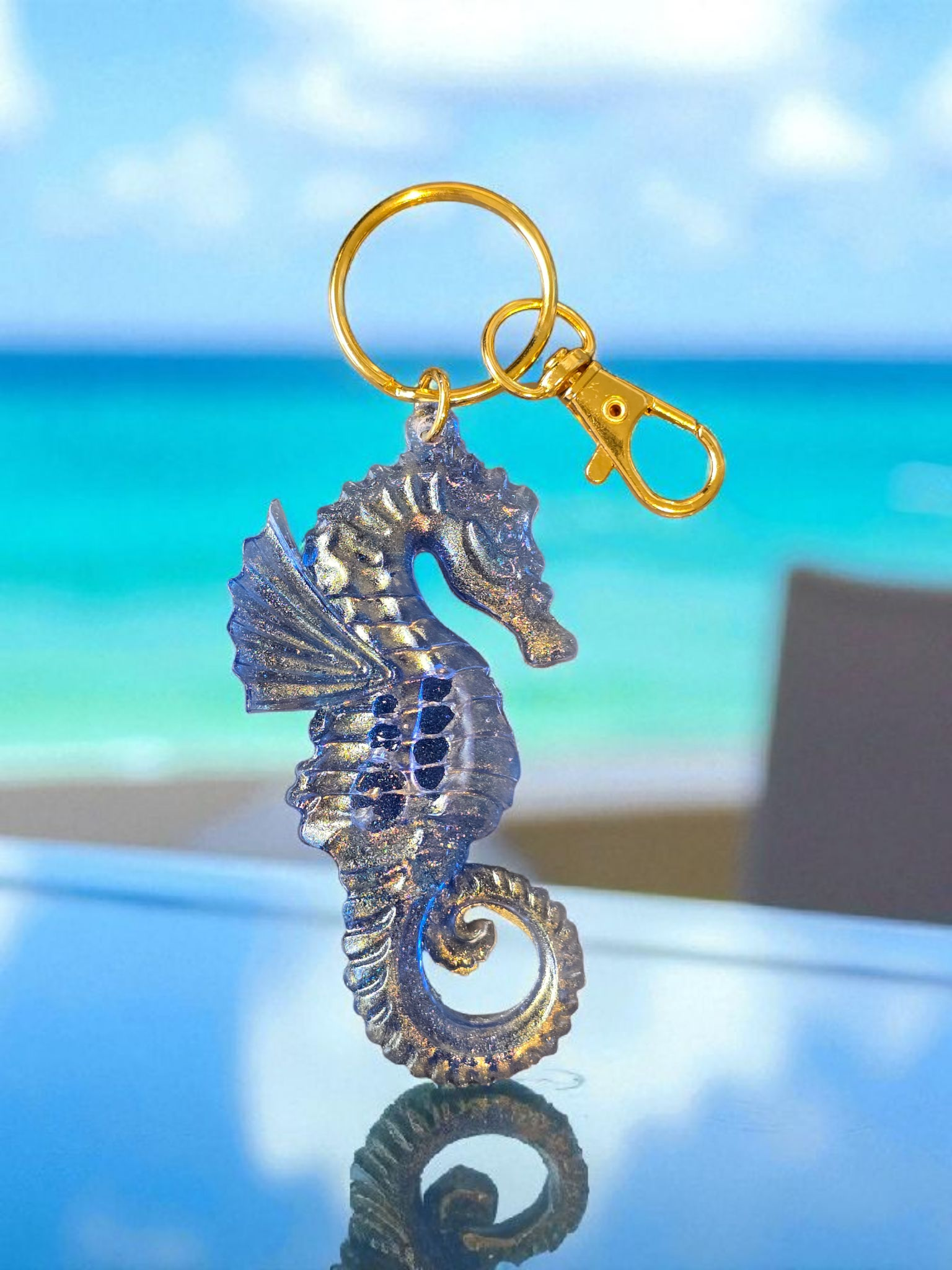 Unlock the magical charm of our Keycharm seahorse in stunning blue and gold! With its intricate design and durable materials, this keychain will add a touch of elegance to your keys or bags. Perfect for seahorse lovers and anyone looking to add a little enchantment to their daily routine.