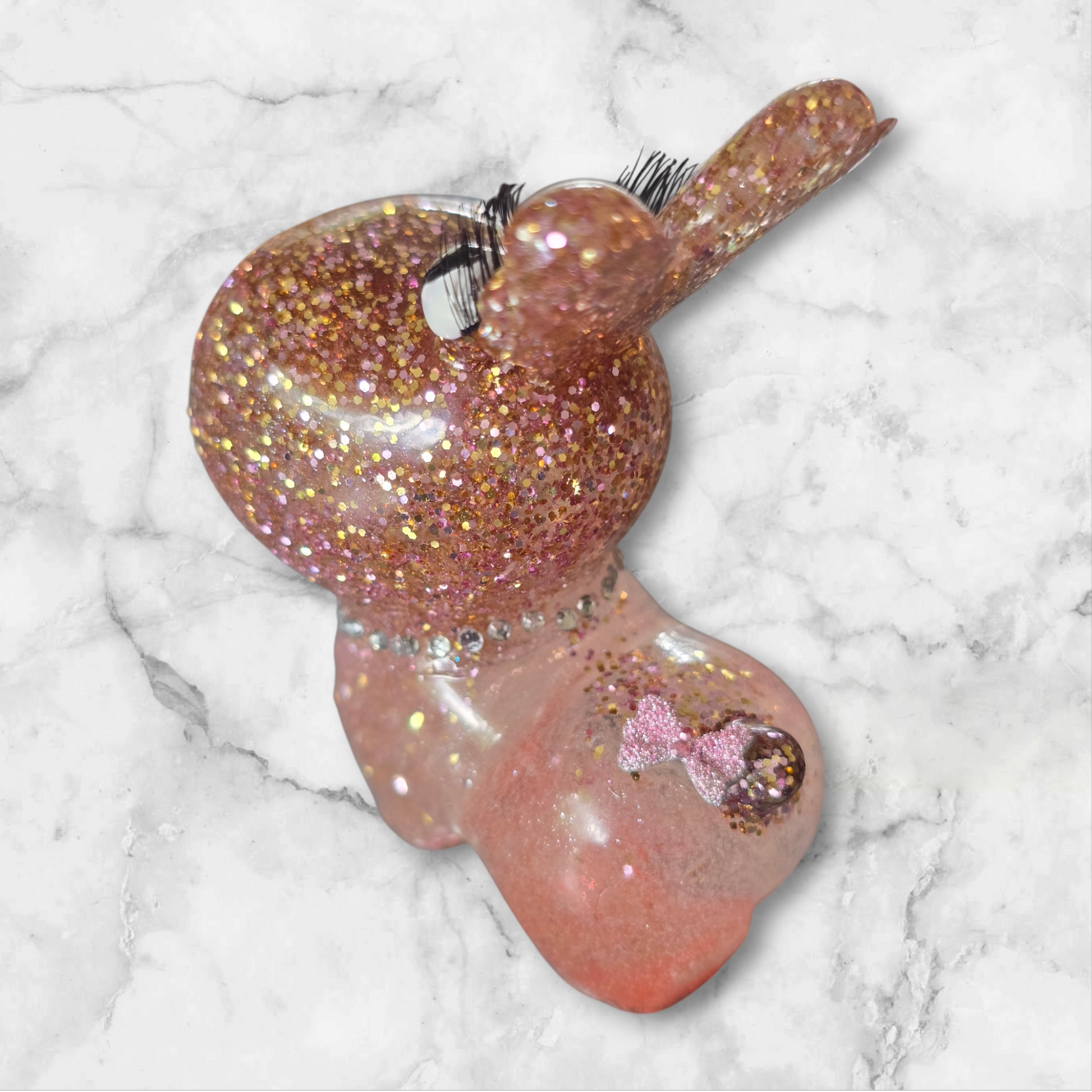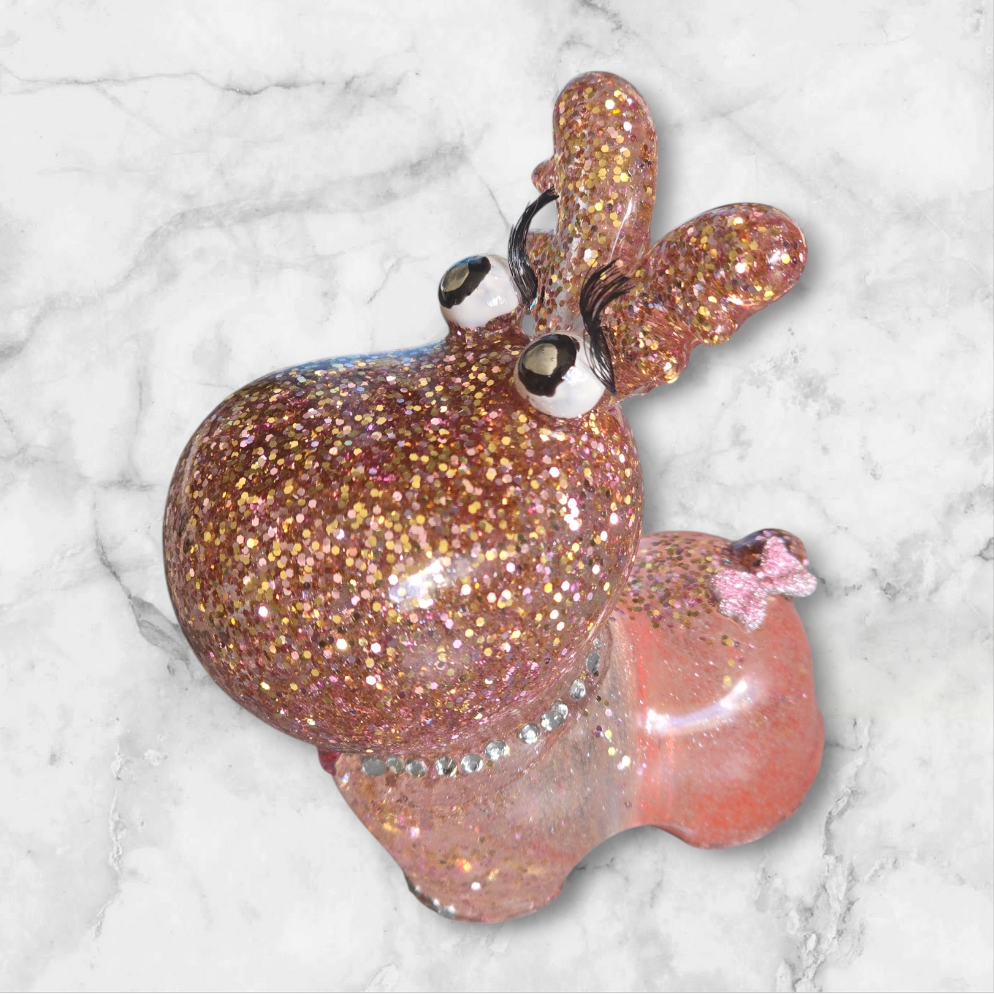 This charming Reindeer is a charming addition to your holiday decor. Made with pink and rose gold accents, it features long, elegant eyelashes and a delicate pink bow, adding a touch of whimsy to any space. Bring the magic of Christmas to life with this enchanting decoration.