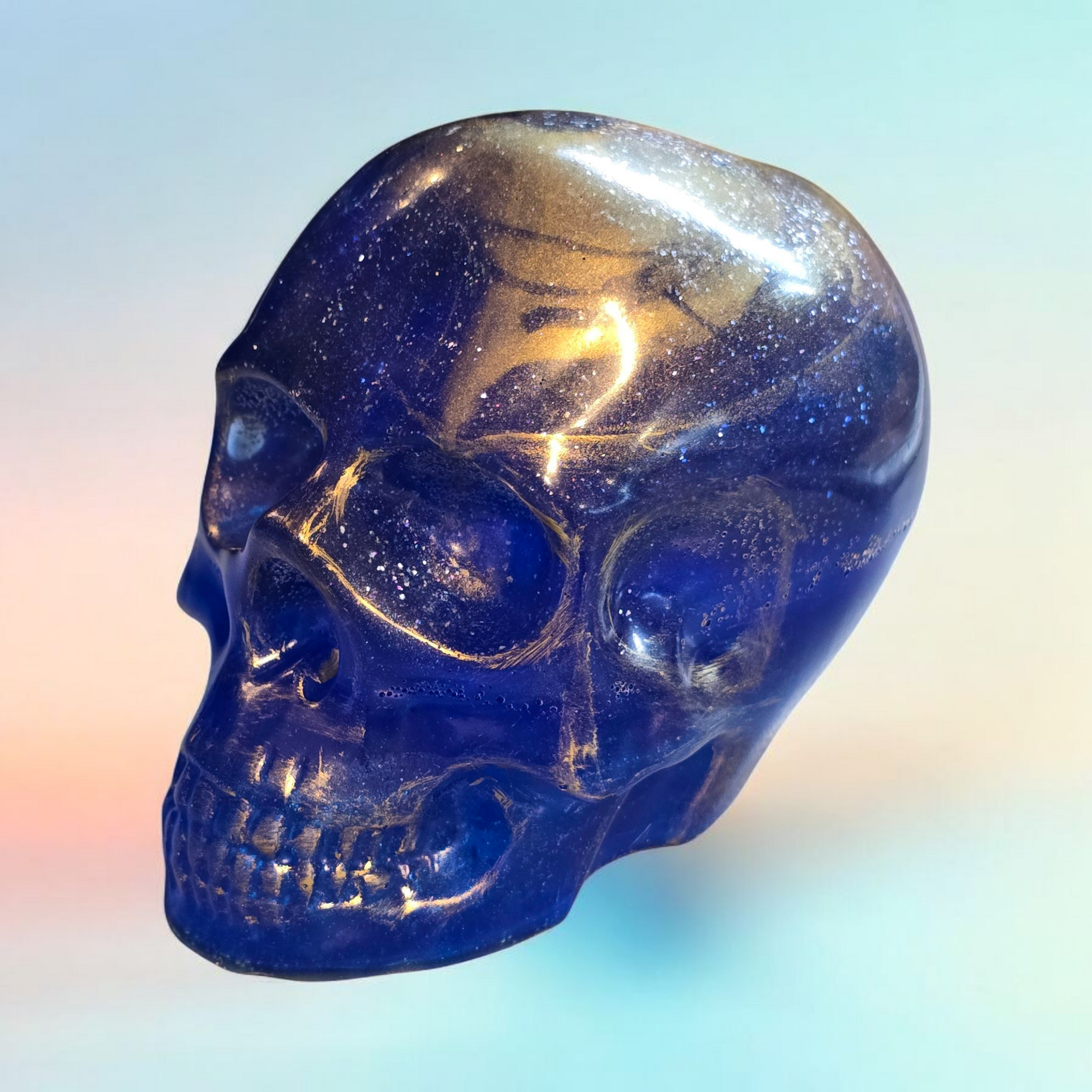 Upgrade your style with our large cobalt blue scull, featuring stunning gold accents. Perfect for any occasion, this large cobalt blue scull will elevate your look and make a statement. Embrace a touch of elegance and sophistication with this must-have accessory. Stand out from the crowd and make a lasting impression.