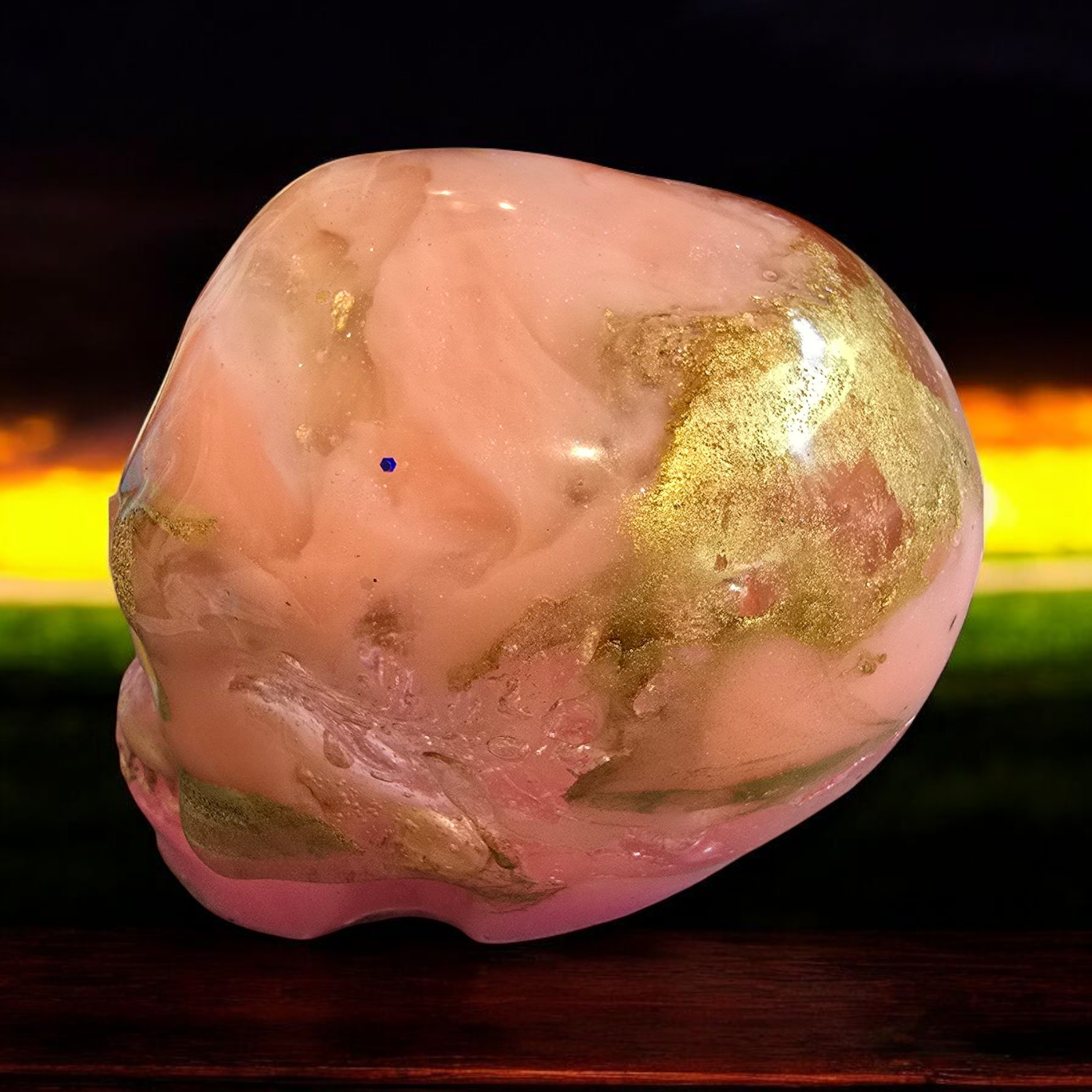 "Embrace the challenge and stand out with our Scull pink and gold medium size! Make a statement with bold colors and a daring design. Perfect for those who like to take risks and add some adventure to their style. Take control and conquer the day!"