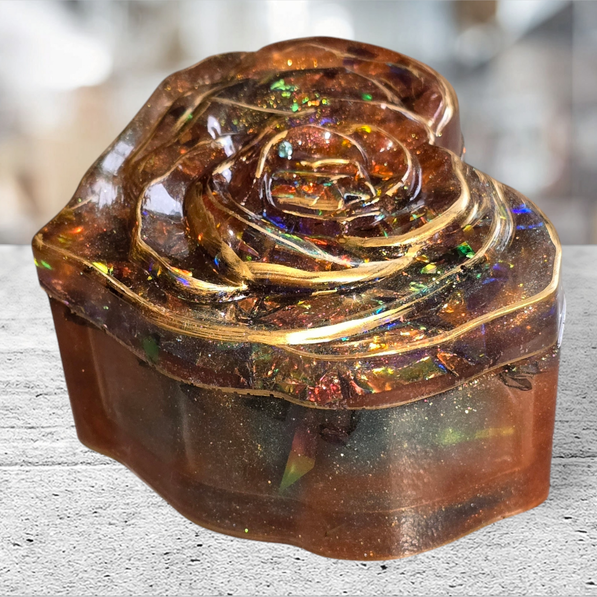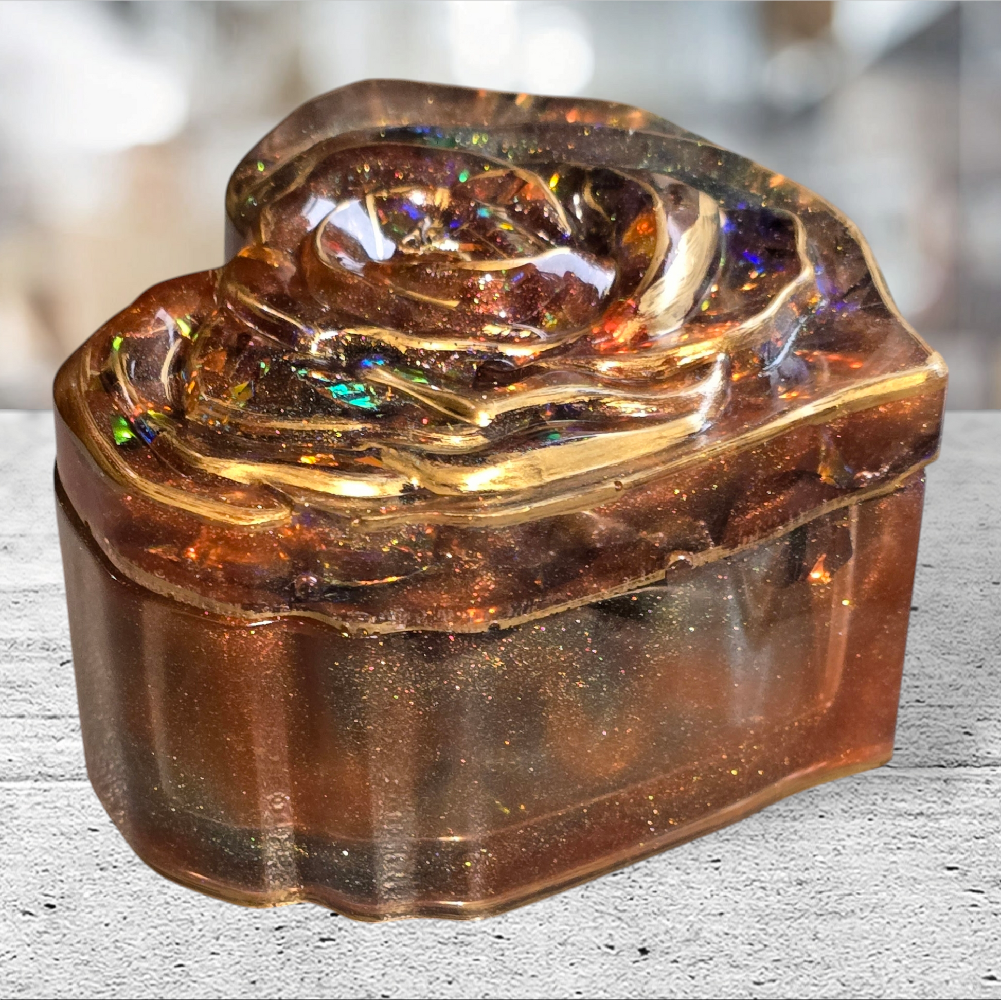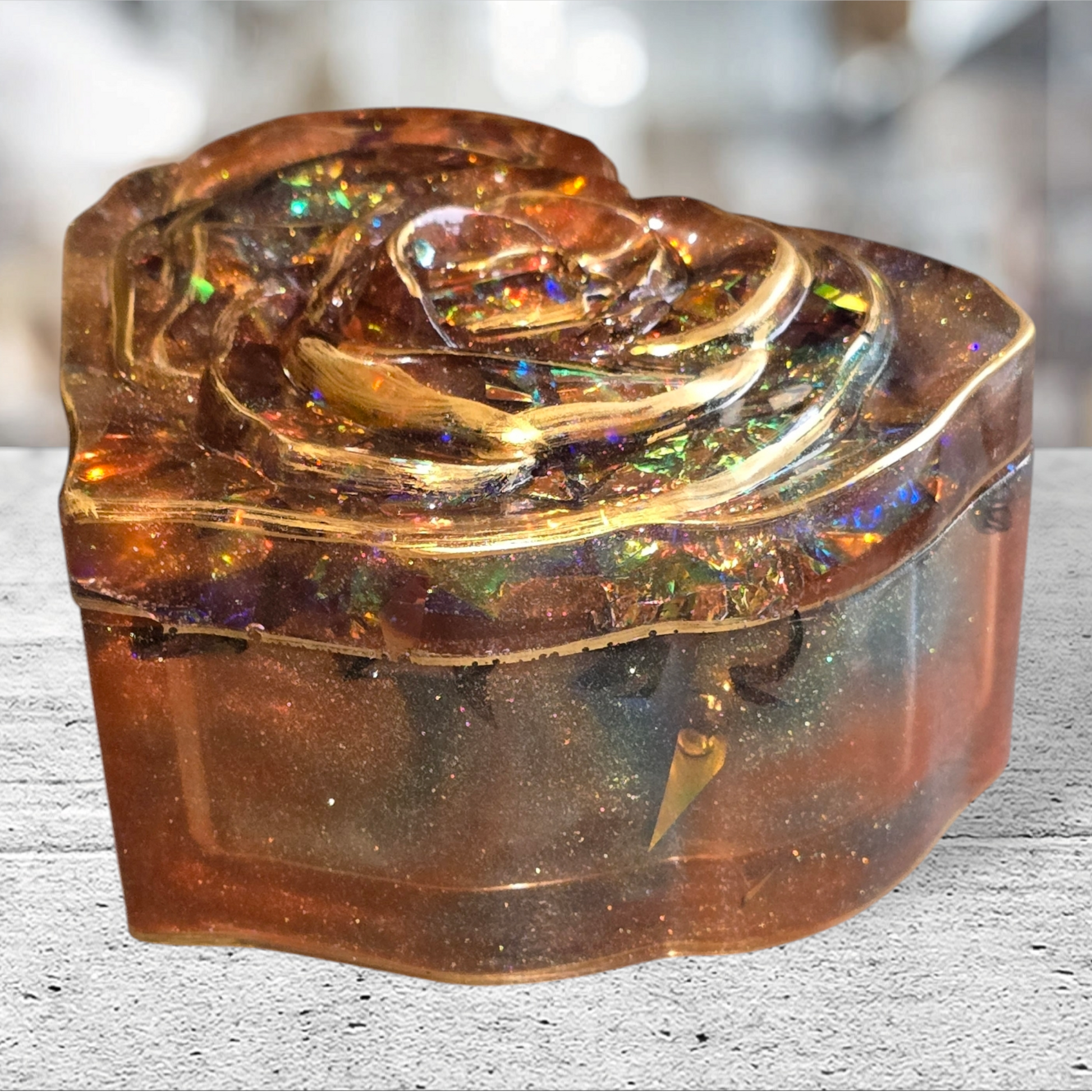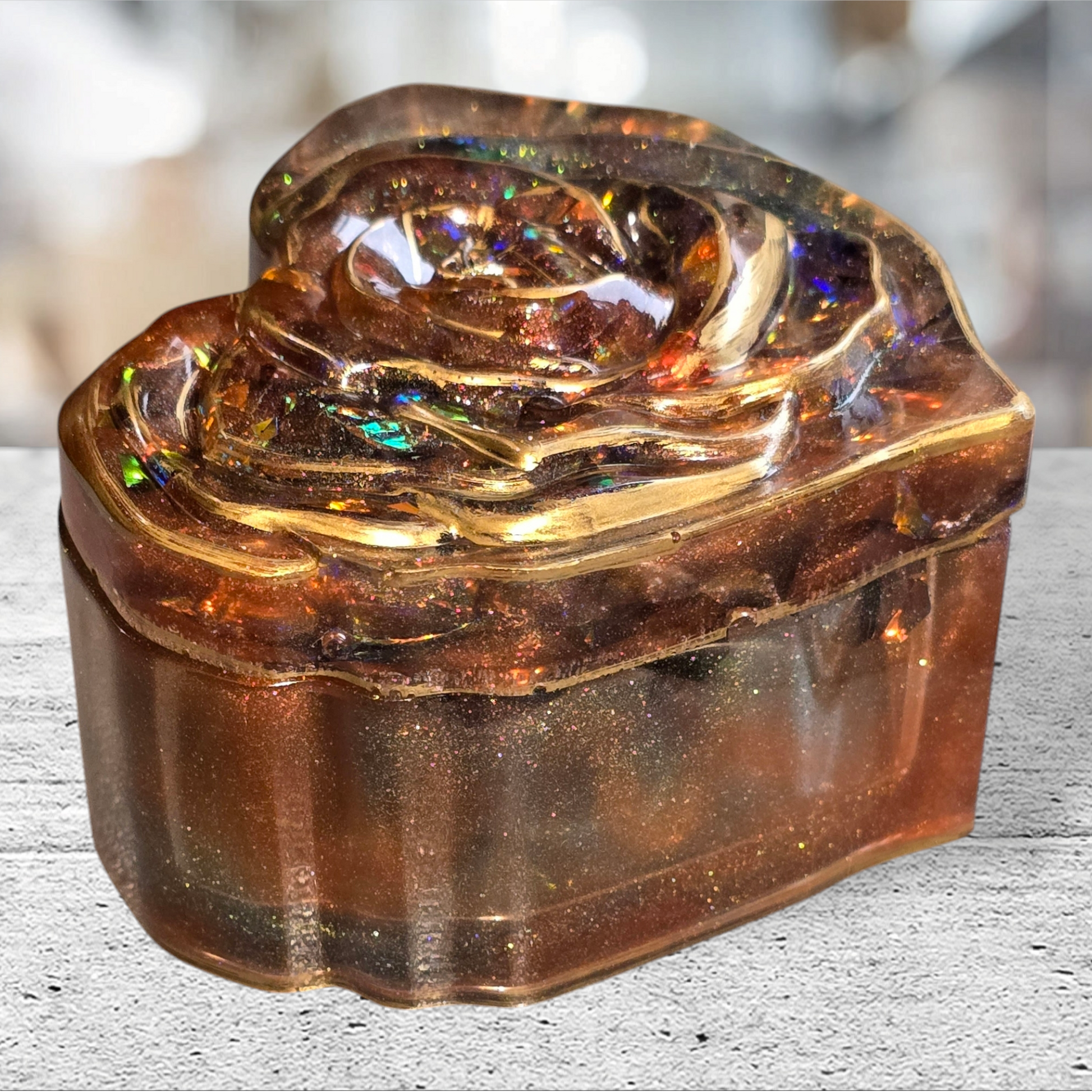"Take a bold risk with our Trinket Rose Heart in bluish copper. The greenish copper gold adds an adventurous touch to this unique piece, making it a daring addition to your collection. Add some challenge and inspiration to your style with this one-of-a-kind trinket."