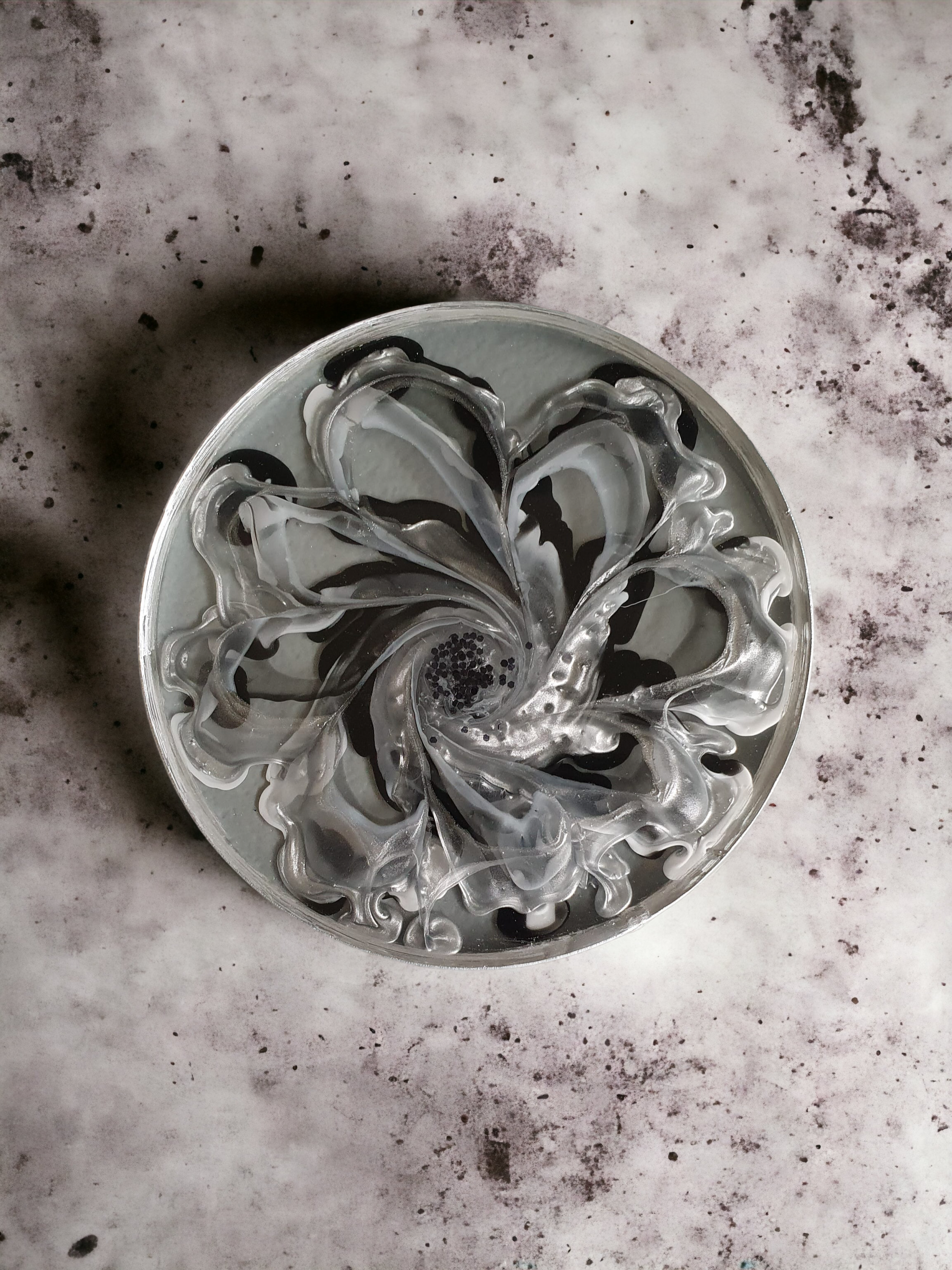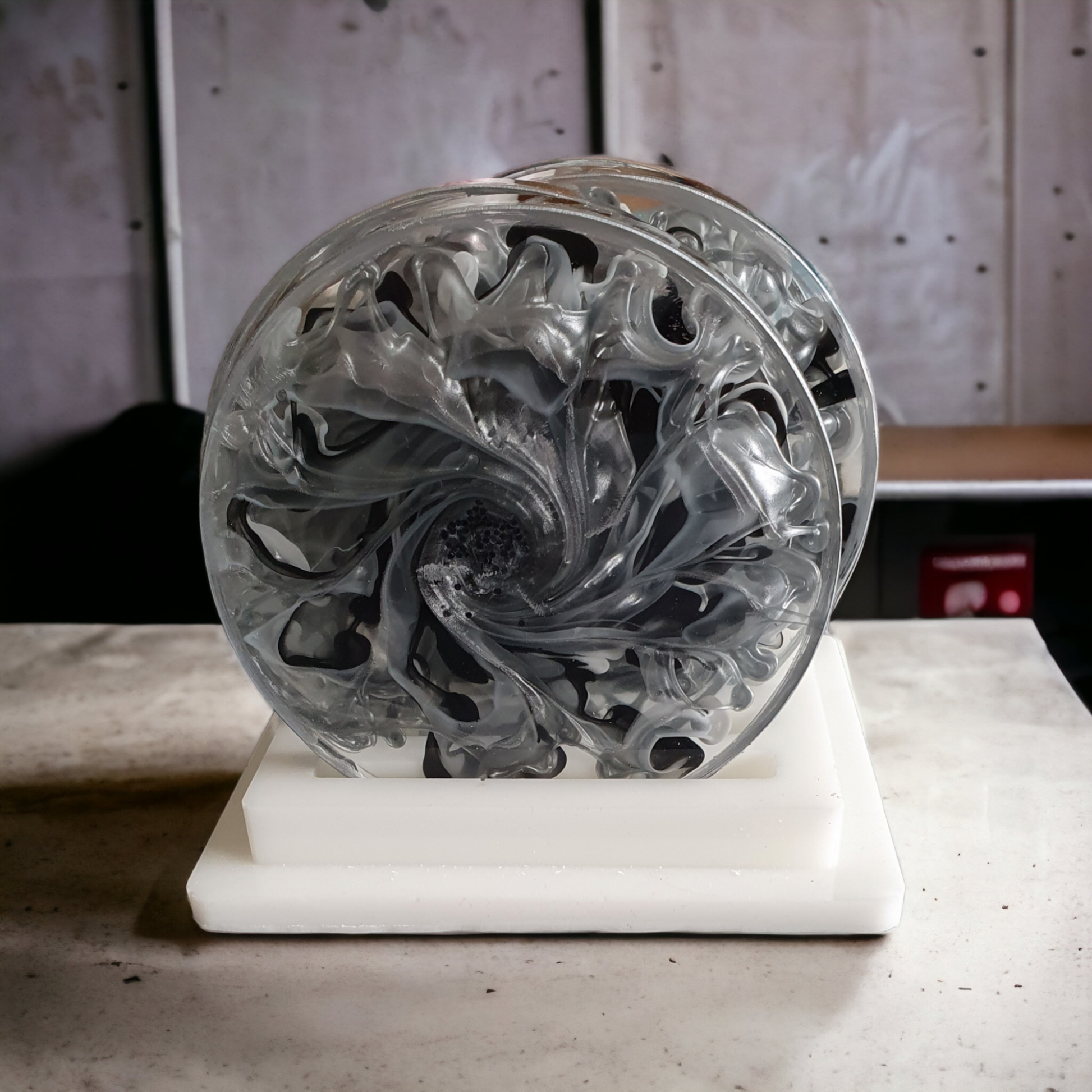 Designed to protect and add flare to your space. Serves as a coaster or adorn your table with a gorgeous piece of art.This gorgeous coaster set is made from resin. The set includes 4 coasters and a coaster stand. Colours are Black, Silver, Grey and white. This item is designed to add a touch of class to any home. It features a minimalist design which is both elegance and versatility. It will create a sophisticated look. It is ideal as a house warming gift, birthday or even a special event for your loved ones. These coasters will add a new atmosphere to any home.